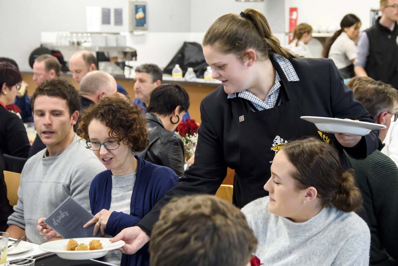Throughout the evening, students undertook different front and back of house roles, ranging from preparing meals and desserts, waiting tables, and operating bar equipment to prepare a range of mocktails and espresso based beverages. The students all exhibited a professional standard of preparation and service and were highly commended on their efforts by patrons of the event.