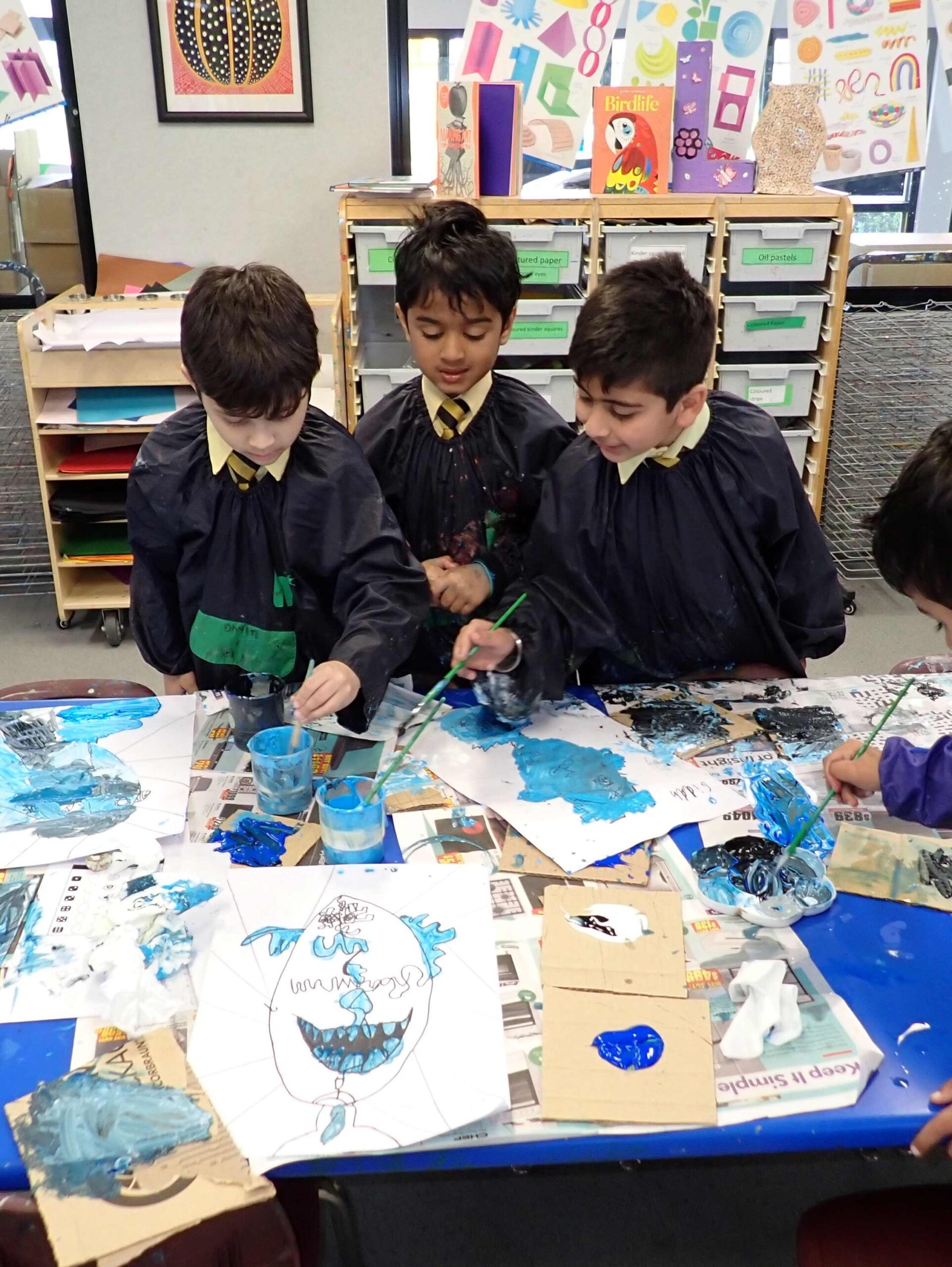 The Year Two students have thoroughly enjoyed their co-curricular time this term, creating a range of artworks to brighten our corridors. They also designed individual flowers which, with the support of Lou Callow, were combined into a stunning collaborative piece now proudly displayed in the foyer of the Woodlea administration building. In addition, all P–4 students took part in a special Blue Challenge Week, where they were tasked with creating a painted artwork using different shades of blue. This challenge encouraged creativity, problem-solving and a deeper understanding of colour.